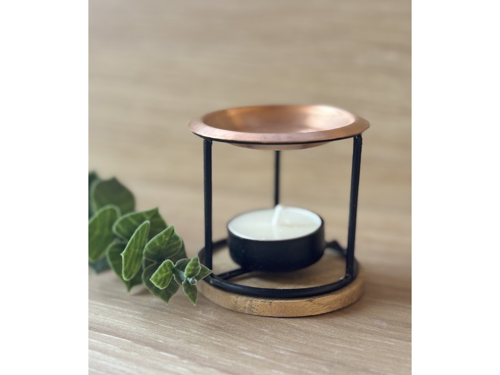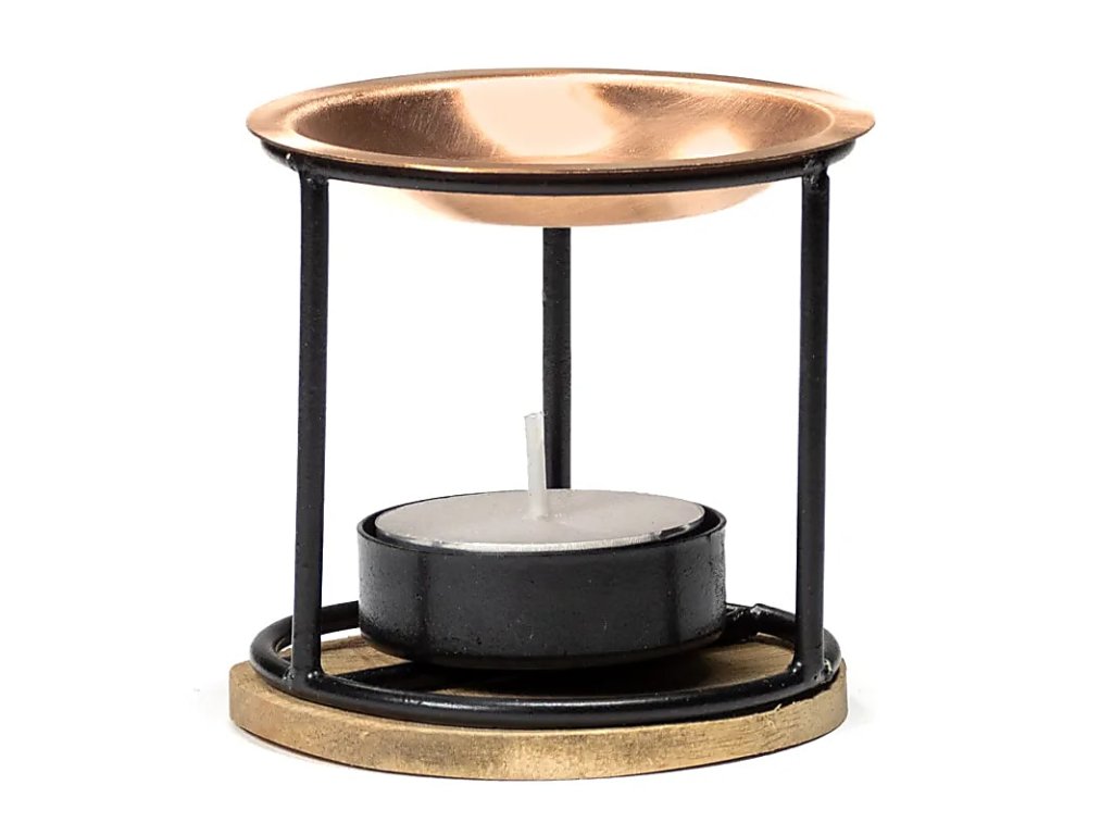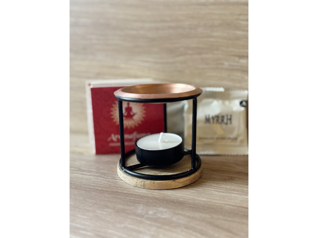 - Kvalitné materiály: kovový difuzér z kovaného železa, meďový tanierik a korková podložka.