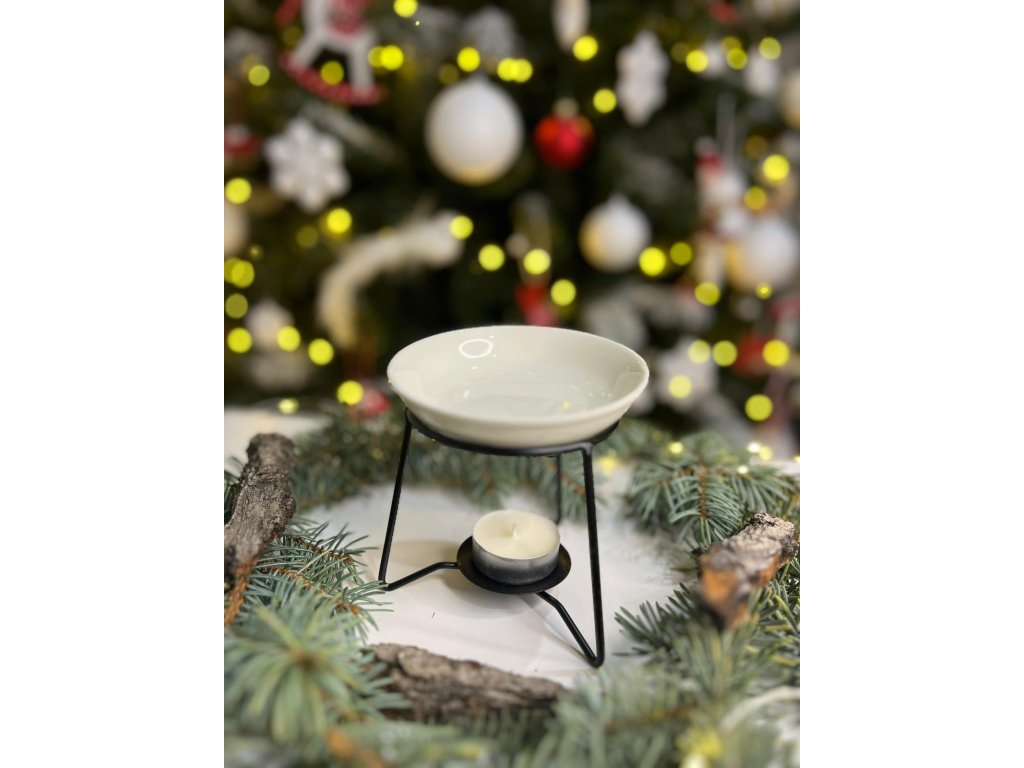 Minimalistický stojan z kombinácie bielej keramiky a čierneho kovu. Vďaka svojmu jednoduchému dizajnu sa hodí do každého interiéru a poslúži ako praktický doplnok pre aromaterapiu, rituály či dekoráciu.