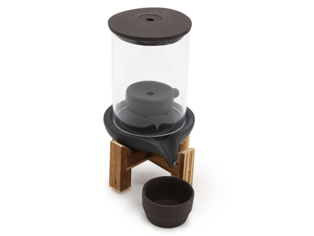 Vyrobený z kvalitnej keramiky a skla, s pevnou drevenou podstavou.