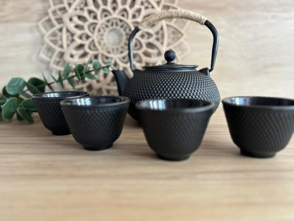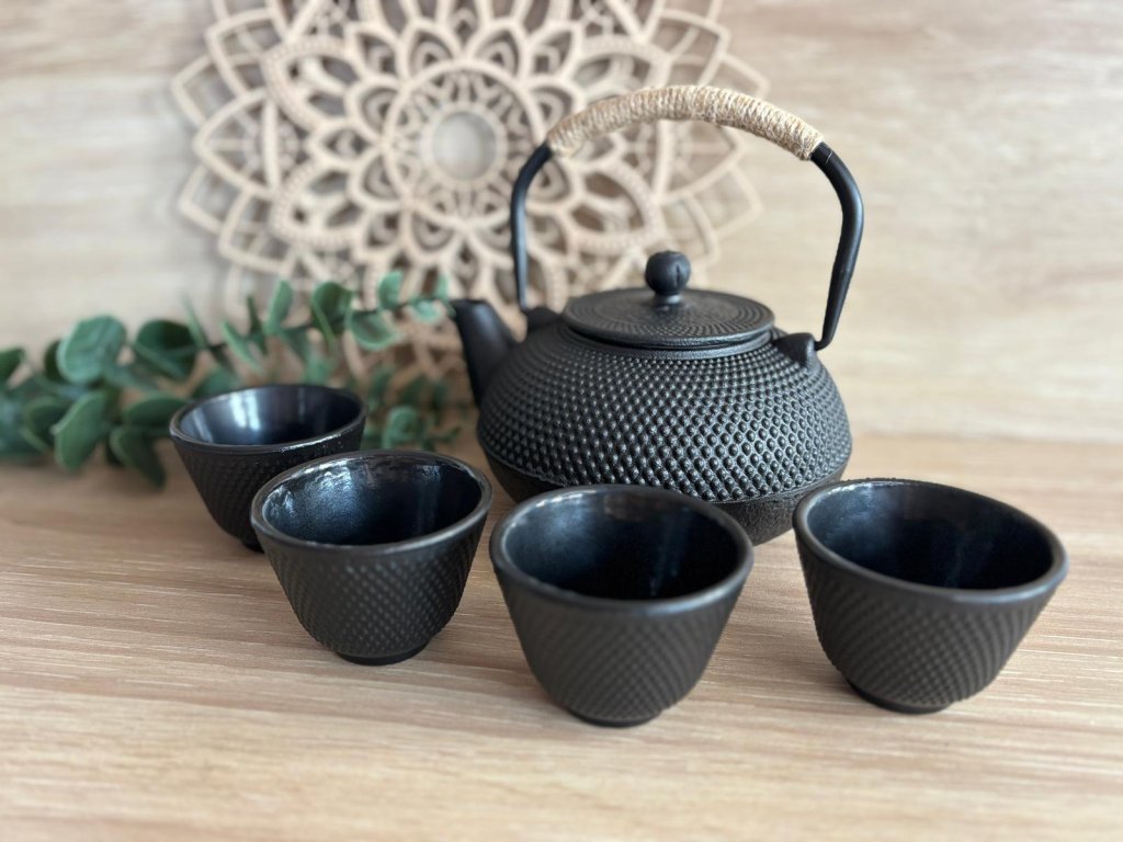 Tento elegantný čajový set v sebe spája silu a jednoduchosť – liatinovú kanvicu Tetsubin v tradičnom japonskom štýle a štyri originálne smaltované čajové šálky.
