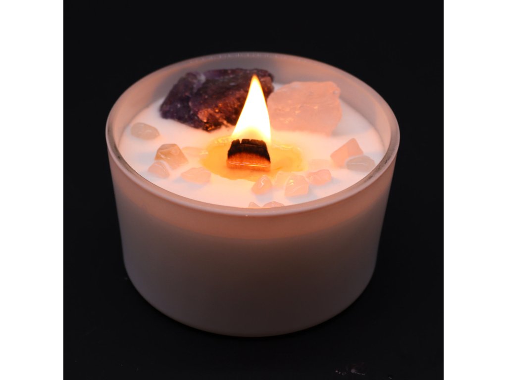 Kryštály ametystu a ružového kremeňa, ktorými je sviečka zdobená, zosilňujú schopnosť vnímať jemné energie a prebúdzať vnútorný vhľad. Spoločne s jemnou vôňou „Sladká pravda kryštálov“ vytvárajú prostredie podporujúce intuíciu a vnútorné poznanie.