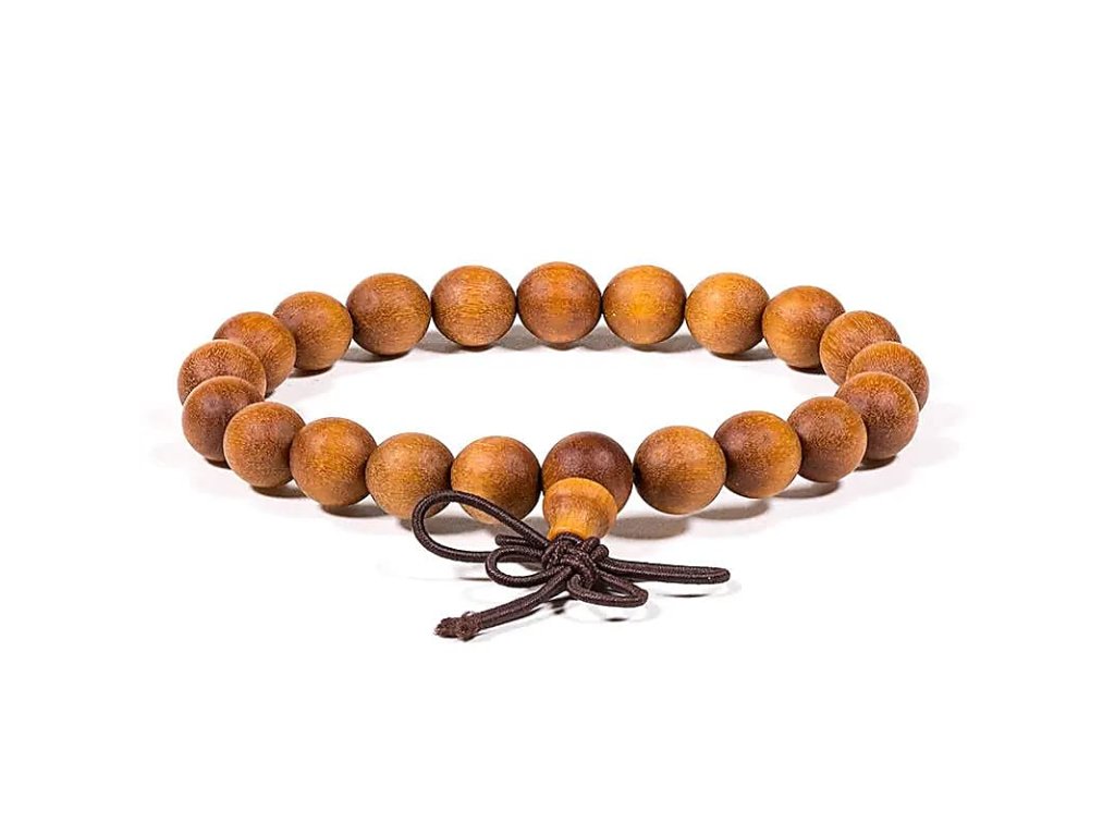 Santal je považovaný za jeden z najčistejších materiálov v ajurvéde a duchovných tradíciách Indie. Má chladivé, upokojujúce a antistresové účinky, podporuje jasnú myseľ, sústredenie a meditáciu. Otočenie korálky počas mantry má terapeutický účinok — pomáha uvoľniť napätie a naladiť myseľ na pozitívnu vibráciu.