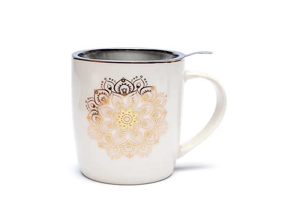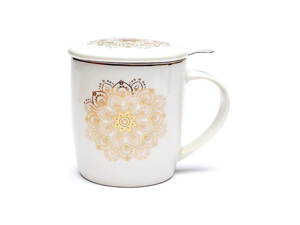 Porcelánový hrnček so sitkom a viečkom MANDALA