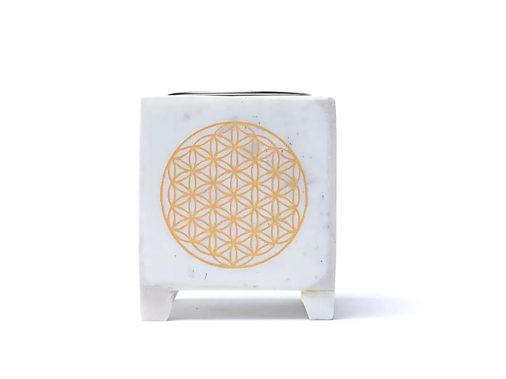 Elegantný kadidlový horák z prírodného bieleho mramoru s vyrezávaným symbolom Kvetu života. Vďaka jemnému kovovému sitku je ideálny na pálenie kadidiel, bylín alebo živíc bez použitia uhlíka – postačí čajová sviečka. Krásny doplnok pre duchovný rituál, relax alebo čistenie priestoru.