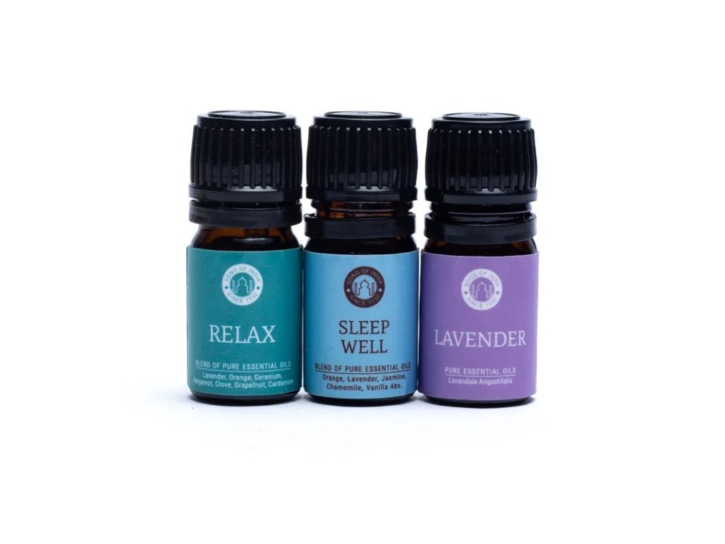 - Relax (5 ml) – levanduľa, pomaranč, geránium, bergamot, klinček, grapefruit, kardamón