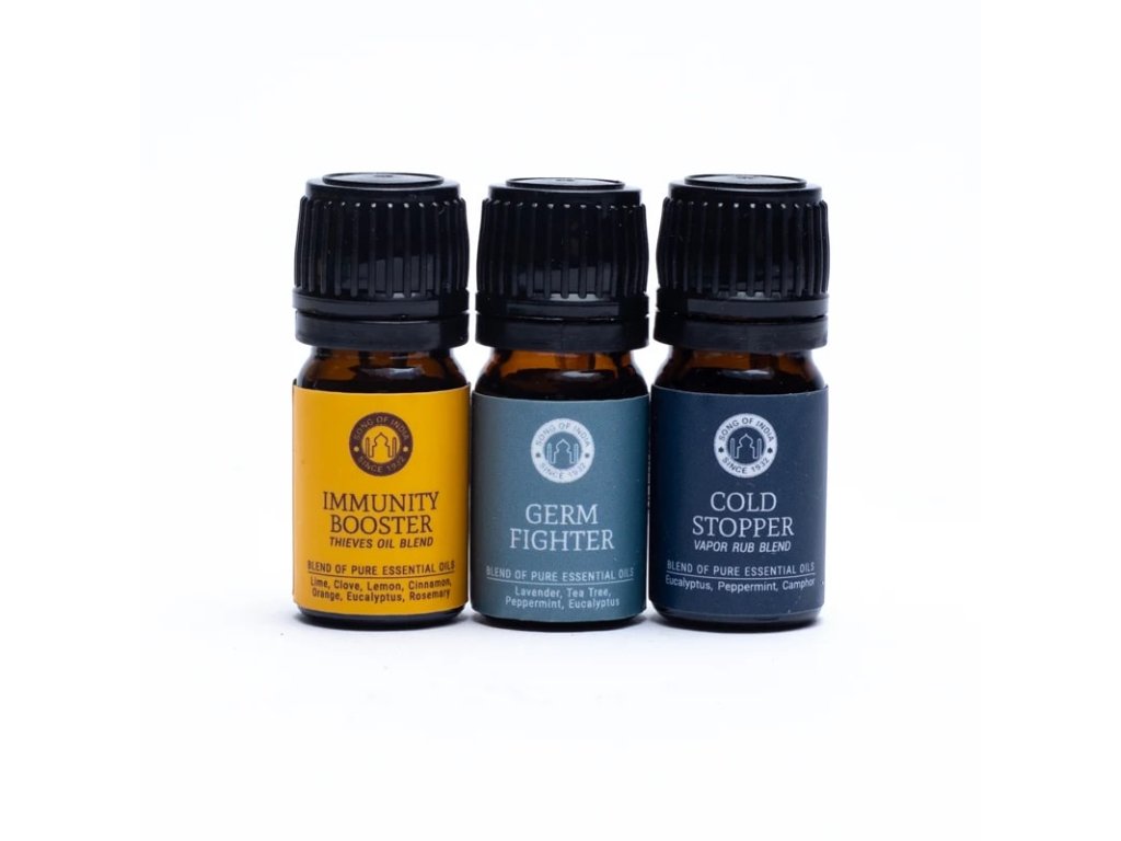 - Immunity Booster (5 ml) – limetka, klinček, citrón, škorica, pomaranč, eukalyptus, rozmarín