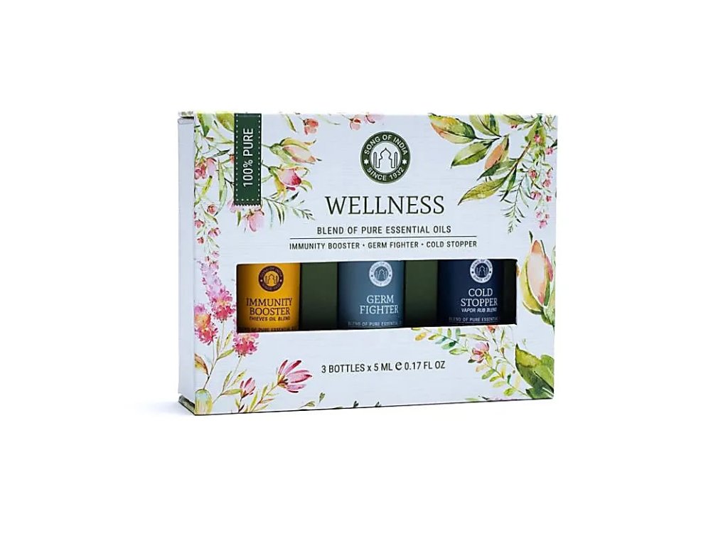 Dopraj svojmu telu aj mysli podporu z čistej prírody s kolekciou Wellness od značky Song of India. V tejto sade nájdeš 3 účinné zmesi esenciálnych olejov, ktoré posilňujú imunitu, chránia pred vírusmi a baktériami a podporujú celkovú pohodu.