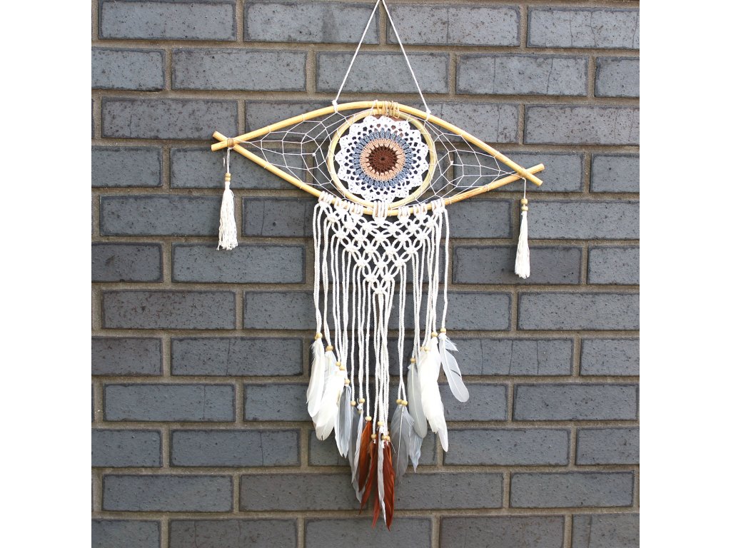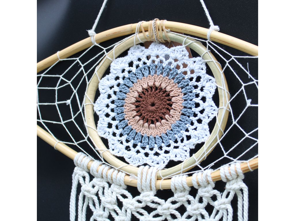 Kombinácia bielej, sivej a hnedej farby vytvára vyvážený kontrast, ktorý sa dokonale hodí do interiérov v boho, prírodnom či minimalistickom štýle. Tento lapač snov nie je len krásnym doplnkom – podľa tradície chráni pred negatívnou energiou a uhrančivým okom, zatiaľ čo zachytáva zlé sny a necháva prejsť len tie dobré.