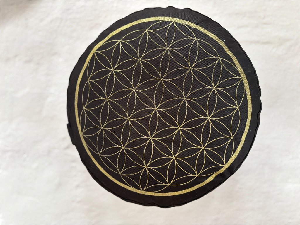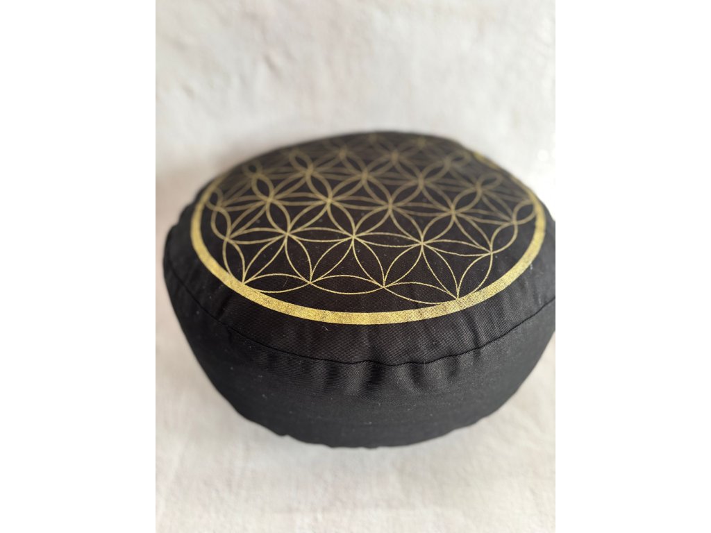 Meditačný vankúš KVET ŽIVOTA (čierny so zlatou potlačou)