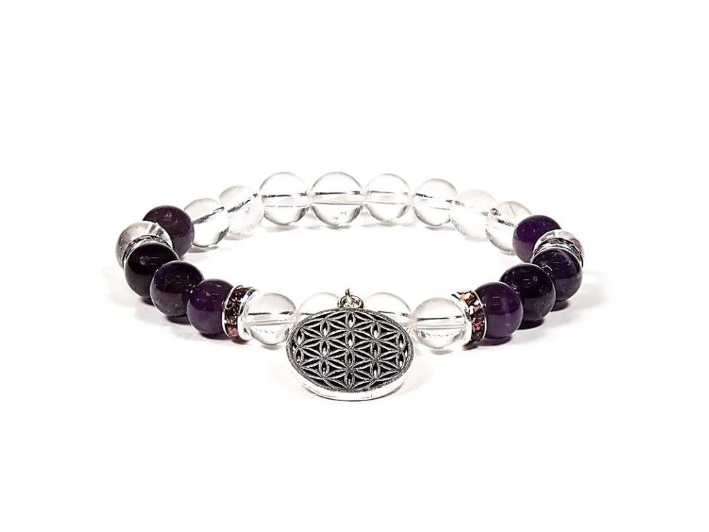 Náramok - HORSKÝ KRYŠTÁL A AMETYST s kvetom života