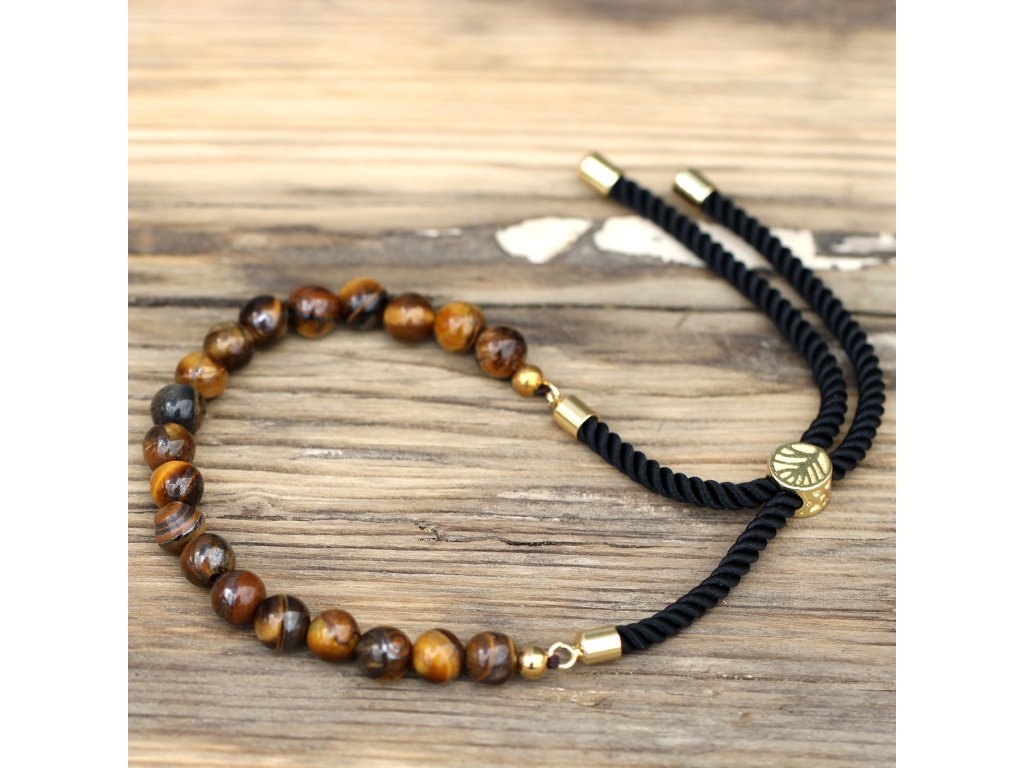Tigrie oko je kameň odvahy, sebavedomia a vnútornej stability. Posilňuje odhodlanie, zvyšuje sústredenie a prináša pocit ochrany pri riešení každodenných situácií. Tento elegantný náramok s korálkami z tigrieho oka, doplnený 18K pozlátenými prvkami a čiernou pevnou šnúrkou, je moderným doplnkom, ktorý spája energiu prírody s luxusným detailom.