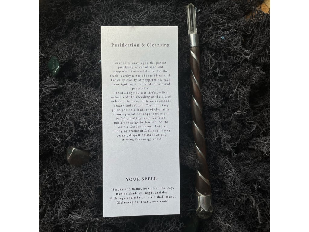 Keď sviečka Gotická záhrada horí, nech jej očistný dym prúdi každým kútom, rozpúšťa tiene a prebúdza energiu znova k životu.