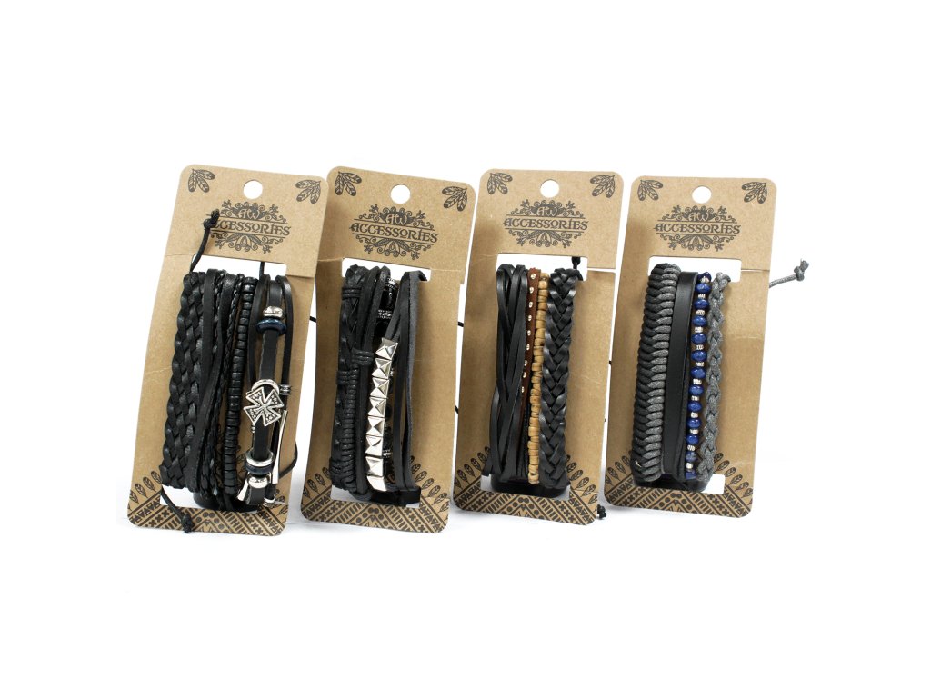 Objavte trendy sady pánskych náramkov z kvalitnej kože s kovovými detailmi. Každá sada obsahuje minimálne 4 náramky, ktoré sa dajú nosiť spolu alebo samostatne – ideálny spôsob, ako doladiť akýkoľvek outfit.