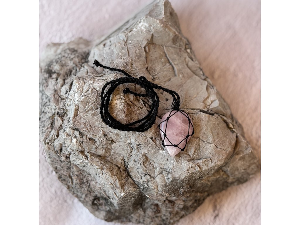 Ružový kremeň je známy ako kameň lásky a srdca. Prináša jemnú energiu súcitu, nežnosti a harmónie do vzťahov. Tento prívesok v tvare kvapky, zdobený čipkovanou šnúrkou, je nielen krásnym šperkom, ale aj symbolom otvorenosti voči láske – k sebe aj k druhým.