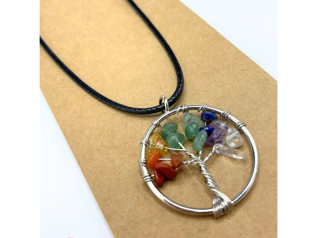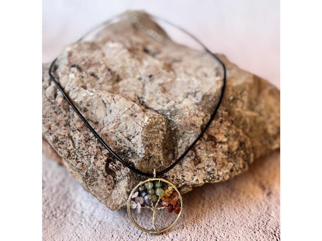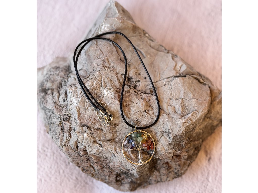 Prívesok Strom života – čakra je symbolom rovnováhy, rastu a prepojenia so všetkým živým. Je zdobený pravými minerálmi čakier, ktoré harmonizujú energetické centrá tela a podporujú emocionálnu pohodu, vnútorný pokoj a duchovnú harmóniu. Tento ručne vyrobený šperk je krásnym doplnkom, ale aj talizmanom, ktorý ti pripomenie tvoju silu a spojenie s prírodou.