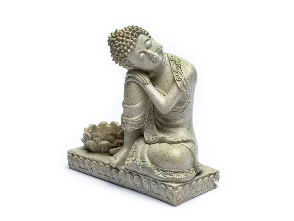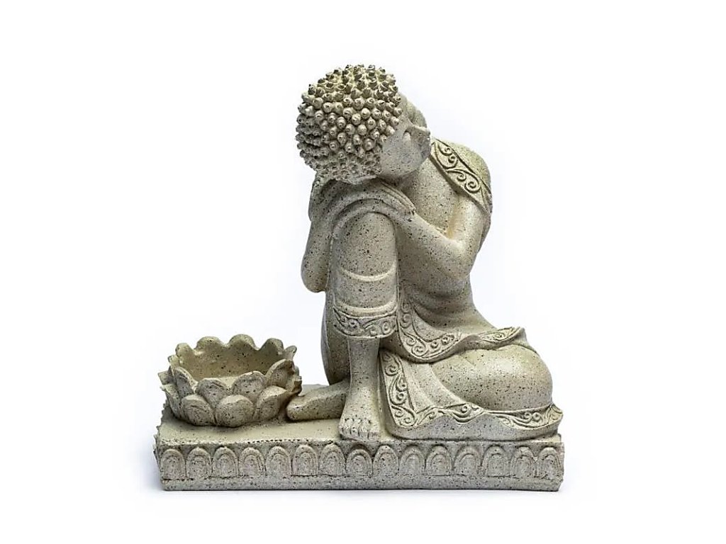 Dekoratívna soška Budhu s lotosovým svietnikom, ktorá prináša pokoj a harmóniu do tvojho priestoru. Ideálna na meditáciu, relax alebo ako štýlový doplnok domova.