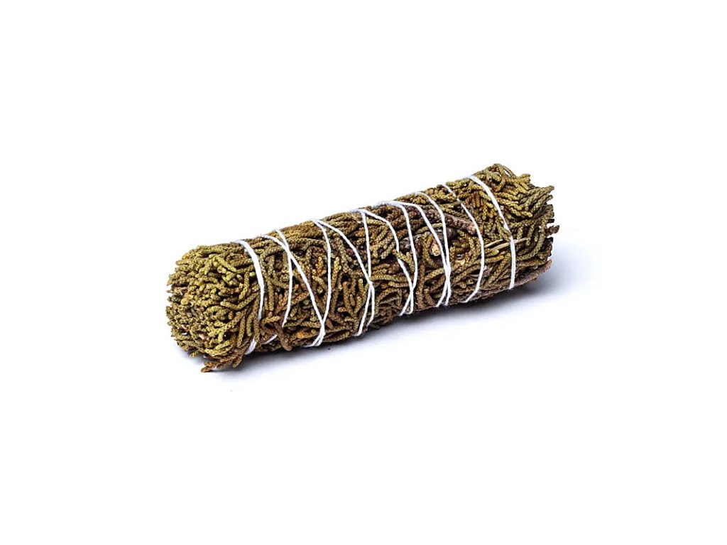 Ručne vyrábaný v Mexiku z čisto prírodného jalovca (Juniperus Communis), tento vydymovací zväzok ponúka sviežu bylinnú vôňu s jemnými citrusovými tónmi – ideálnu na naštartovanie dňa s pozitívnou energiou. Napriek zelenej farbe listov sa ľahko zapaľuje, pretože sú menej husté než u iných druhov kadidiel.